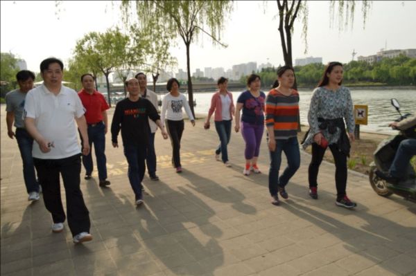 4月28日下午4:00,斜阳浓浓,微风徐徐,在华体会体育(HTH)国际-首页领导秦广远、付立文等同志的带领下,近40名员工在楼下准时集合,排成整齐的健步走队伍,挥舞着“郑州市建设投资集团”的旗帜,精神抖擞地沿着如意湖畔阔步前行,在运动中体验健康和快乐。