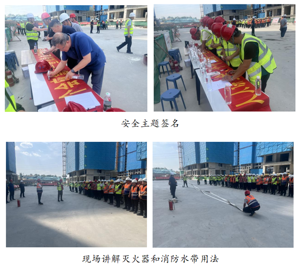 活动期间,大家积极参与安全主题签名和主题宣誓,讲解员现场讲解消防水带和灭火器的用法,解答安全生产相关知识,并开展了消防实战演练。华体会体育(HTH)国际-首页分管安全生产的总经理助理黄志澎作重要讲话,强调了安全生产的重要性,要求各单位扎实做好今年防汛工作,并为一线工人发放防暑降温药品和安全知识手册200套。