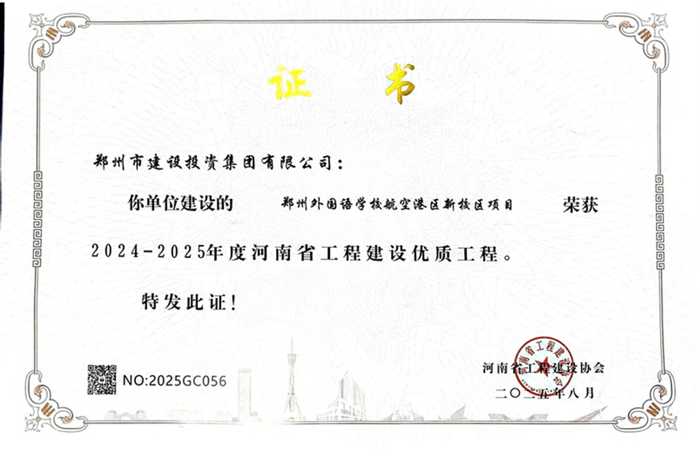 在各参建单位的共同努力下,该项目顺利通过了河南省工程建设协会组织的优质工程评选,荣获了2024-2025年度河南省工程建设优质工程。